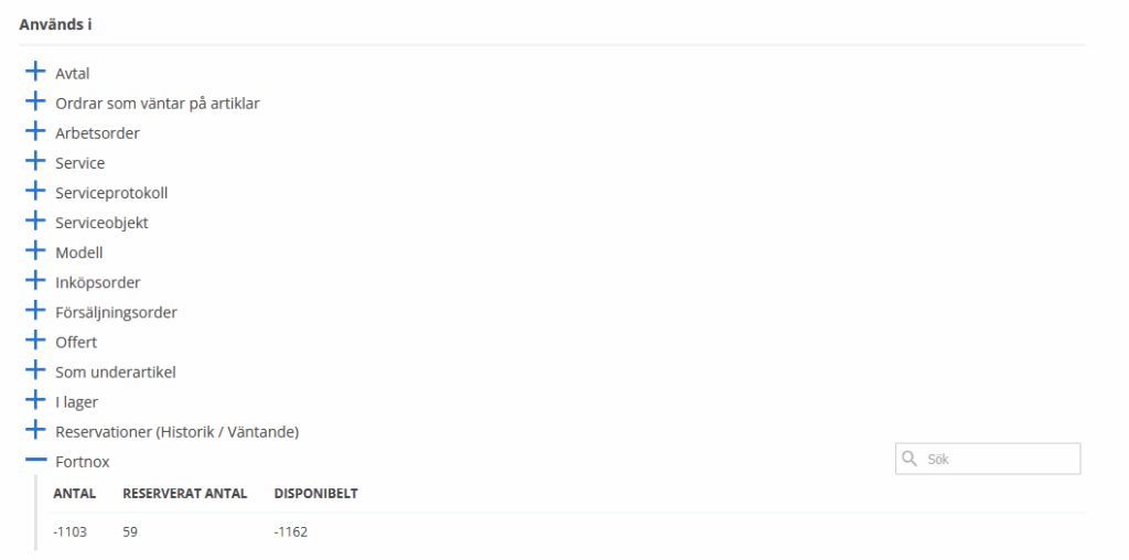 Nu visas information även om lagret i Fortnox på artikeln i artikelregistret. Du hittar informationen längst ner på artikelposten.