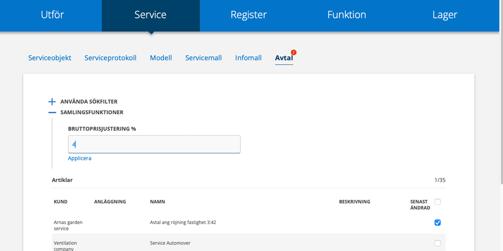 Har du skapat avtal där fakturerade priser behöver indexhöjas?