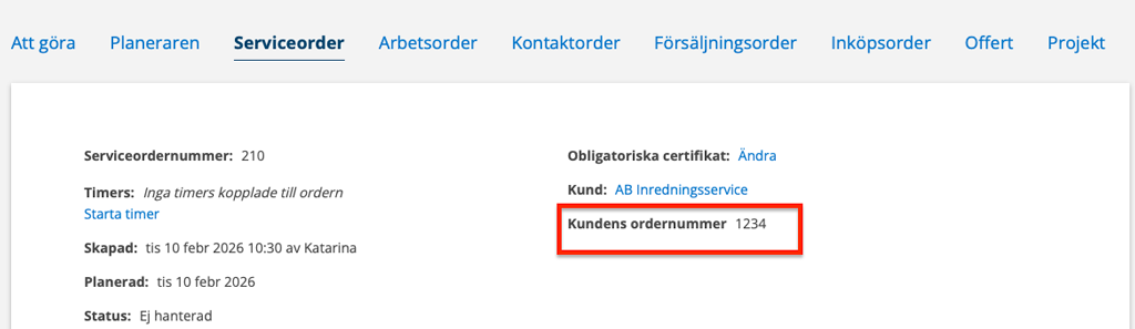 26-02-10 – Ang kundens ordernummer, offert från felanmälan mm