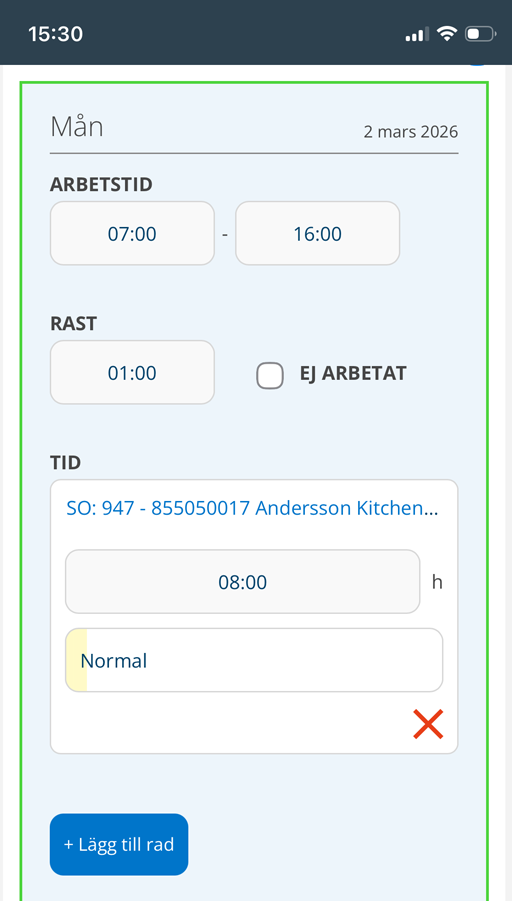 Vi har gjort lite layout-ändringar för att göra det enklare att tidsrapportering i mobil.