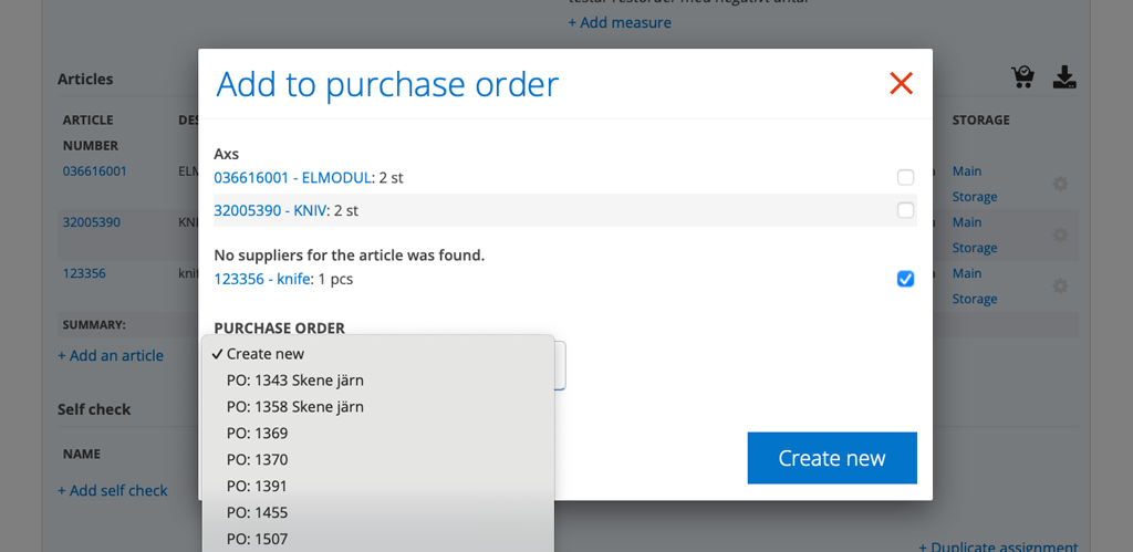 Previously, you were only able to see purchase orders that you created yourself. This has now changed so you can see and add more articles to purchase orders that others have created.