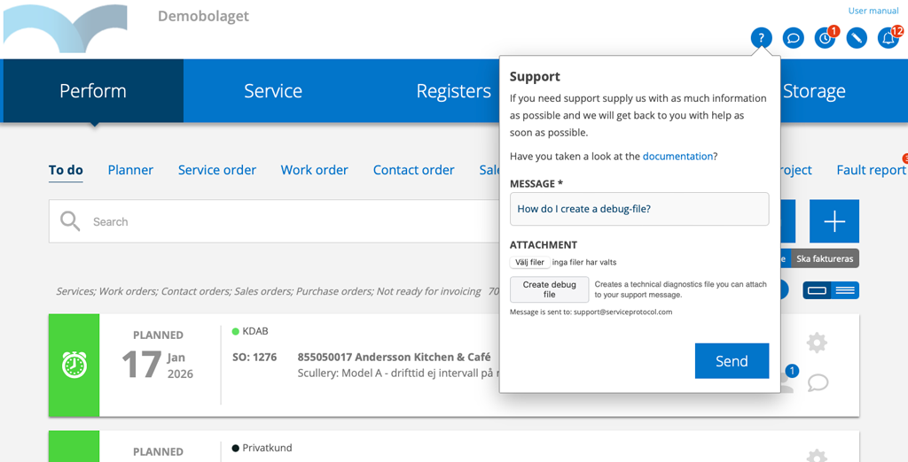 Need to attach a file? Log in to app.serviceprotocol.com, click on the Support symbol (a question mark) and fill in your question or description of an error.