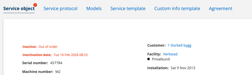 The information about a facility lists which orders, error reports etc. are linked to the facility. You can also quickly add orders, service objects, fault reports etc.
