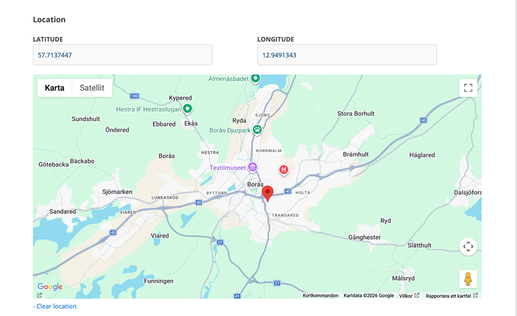 You can also enter your position by filling in the longitude and latitude fields. Fill in according to WGS84 decimal.