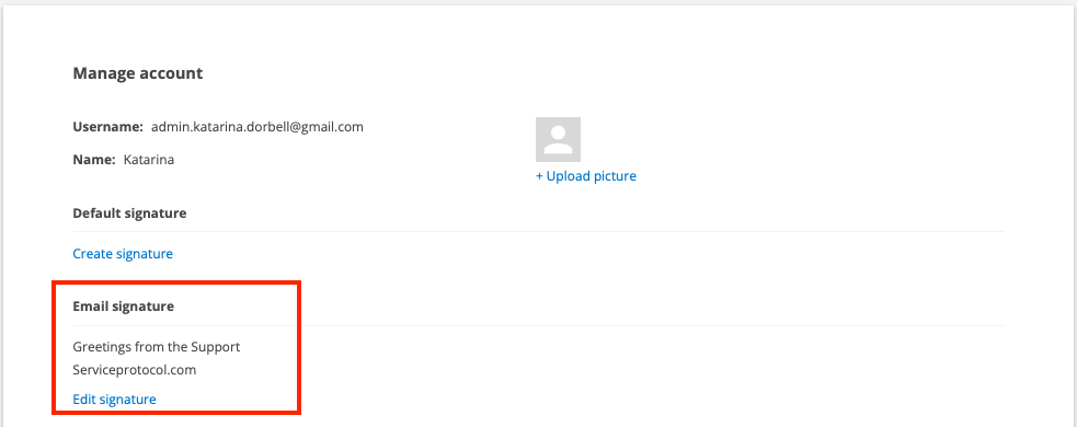 Then you add an email signature in your account settings. This is then your personal signature and is automatically added after a message you have created as above. The signature will not be displayed unless you have selected one of your templates.