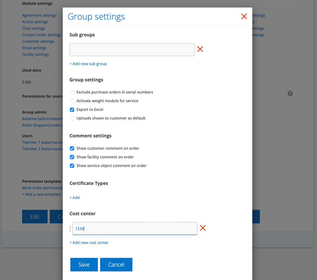 Enter cost centers. The cost centers are displayed in a dropdown in the Cost Center field in all places where the field exists, such as orders, customer cards, facility…