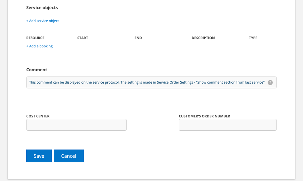 If you add a comment in the Comment field on a service object, the comment will appear under the service object’s name/description on orders, quotes and protocols.