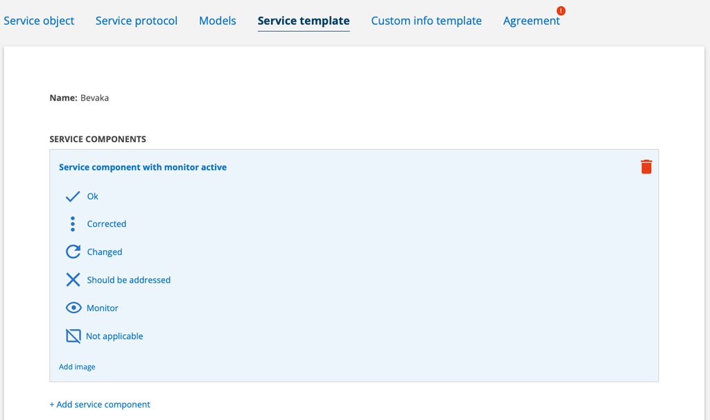 Adds an “eye” to the service template to signal that you need to pay attention to something at the point. The information is added to the protocol under the Status heading.