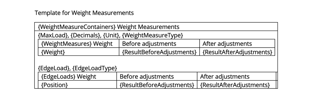 | {MaxLoad} {Decimals} {Unit} {WeightMeasureType} {WeightMeasures} | Weight |
