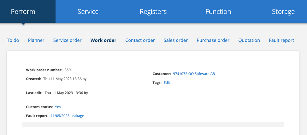 Adding tags is now available as an option for orders as well. Work orders, Service orders, Sales orders, Purchase orders and Contact orders.