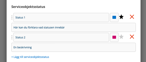 Ställer du in vilken status som ska vara standard så behöver du inte välja status varje gång du skapar ett nytt serviceobjekt.