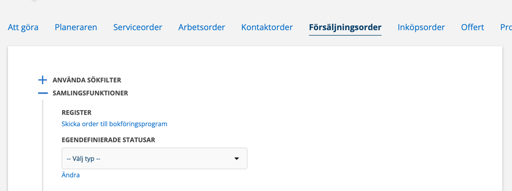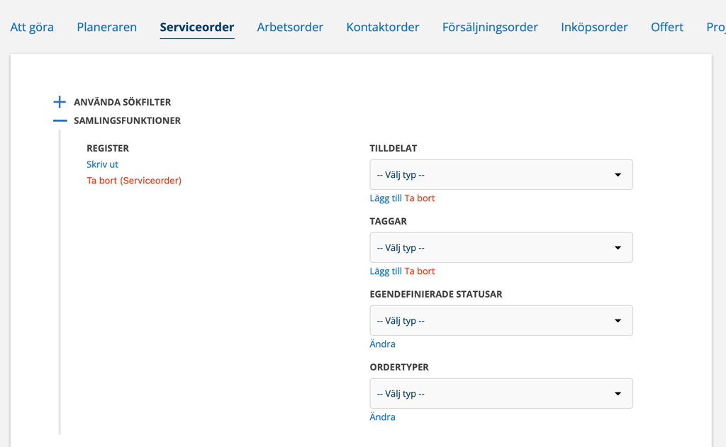 För Serviceorder ger samlingsfunktionen möjlighet att: