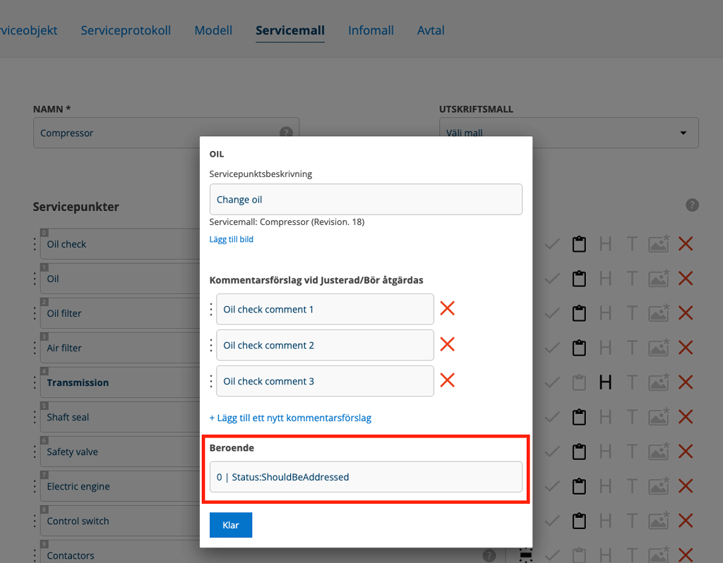 - 7 | Status:ShouldBeAddressed = Visas bara om servicepunkt 7 har status Bör åtgärdas.